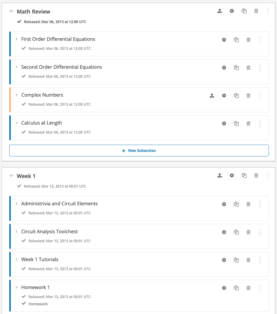 課程的骨幹是其組織形式。Studio 為您提供了大綱編輯器,通過簡單的層次組織和拖放操作來幫助您和您的學生保持有序組織。